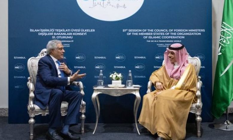 التقى الأمير فيصل بن فرحان بن عبدالله وزير الخارجية، اليوم، نائب رئيس الوزراء وزير خارجية جمهورية باكستان الإسلامية إسحاق دار، وذلك على هامش اجتماع الدورة الـ 51 لمجلس وزراء خارجية منظمة التعاون الإسلامي، المنعقد في مدينة إسطنبول التركية.