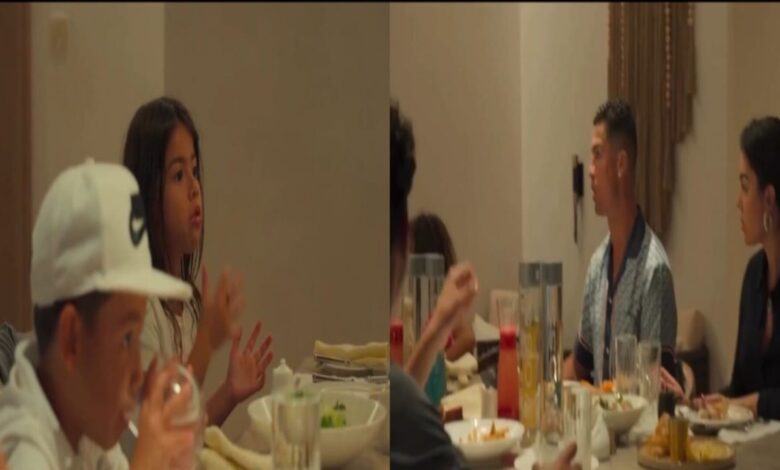 وظهر رونالدو، وهو يتحدث مع أطفاله عن مفهوم الشهرة وسألهم عن أكثر شخص مشهور يعرفونه؛ ليجيبوا “أمي” في إشارة إلى عارضة الأزياء الأرجنتينية جورجينا رودريغيز.