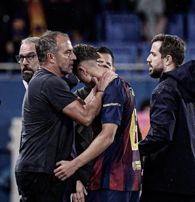 وقال برشلونة عبر منصة إكس “يعاني فيرمين لوبيز من إصابة في العضلة الحرقفية القطنية لساقه اليسرى. سيغيب عن الملاعب لنحو ثلاثة أسابيع”.