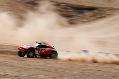 ويمتد المسار على طول 3127 مترًا، وعرض يتراوح بين 10 و60 مترًا، ويجمع بين الخطوط عالية السرعة والمنعطفات الواسعة والقفزات الهوائية في مزيج من الرمال والصخور الطبيعية، لاختبار مهارات السائقين في أصعب الظروف.