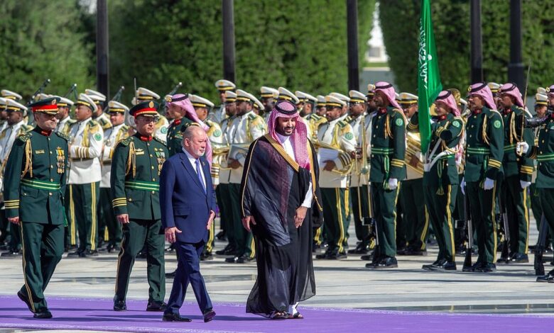 وأقام سمو ولي العهد مراسم استقبال رسمية لجلالته.