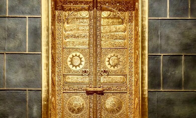 ويعود أصل الباب إلى عهد الملك خالد بن عبدالعزيز -رحمه الله- إذ صُنع عام 1399هـ الموافق 1979م من الذهب الخالص، وتميز بتفاصيله الدقيقة ونقوشه الإسلامية الثرية، التي تضمنت آيات قرآنية شكّلت جزءًا أصيلًا من هوية التصميم، في مزيج فني يعكس مكانة الكعبة المشرفة وقدسيتها في نفوس المسلمين.