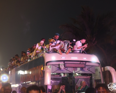 وخرج لاعبو الأهلي في مسيرة احتفالية على متن حافلة مكشوفة جابت كورنيش جدة، وسط حضور جماهيري كثيف، حيث توافدت الجماهير للاحتفال مع الفريق في أجواء حماسية.