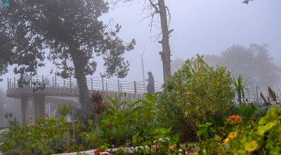 رسم الضباب بين أشجار المتنزهات والحدائق المطلة لوحة جمالية إبداعية على قمم جبال السراة بمدينة الباحة، لينتعش المكان برائحة النباتات الطبيعية التي تعطي النفس انطباعاً بالارتياح.[br]وشجعت تلك الأجواء العديد من الأهالي والزوار خلال الإجازة على الاستمتاع بهذه المناظر الخلابة برغم برودة الأجواء وانخفاض درجة الحرارة التي تشهدها المنطقة هذه الأيام.[br]وصاحبت كميات الضباب الهائلة قطرات أمطار خفيفة، أكسبت المكان حلة من حلل الجمال الأخّاذ لطبيعة قمم الجبال الساحرة، حيث لم تتجاوز درجة الحرارة الـ 10 درجات مئوية، وهو معدل يظهر الضباب فيه بحالته الطبيعية الجذابة.