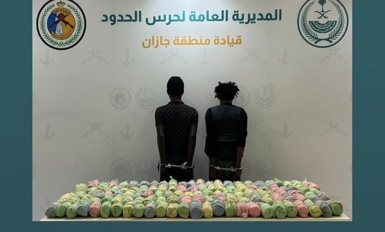 قبضت الدوريات البرية لحرس الحدود في قطاع الدائر بمنطقة جازان على مخالفين لنظام أمن الحدود من الجنسية الإثيوبية، لتهريبهما (90) كيلوجرامًا من نبات القات.