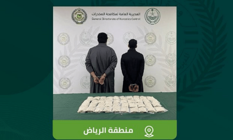 وأشارت المديرية العامة لمكافحة المخدرات إلى إيقافهما واتخاذ الإجراءات النظامية بحقهما، وإحالته إلى النيابة العامة.